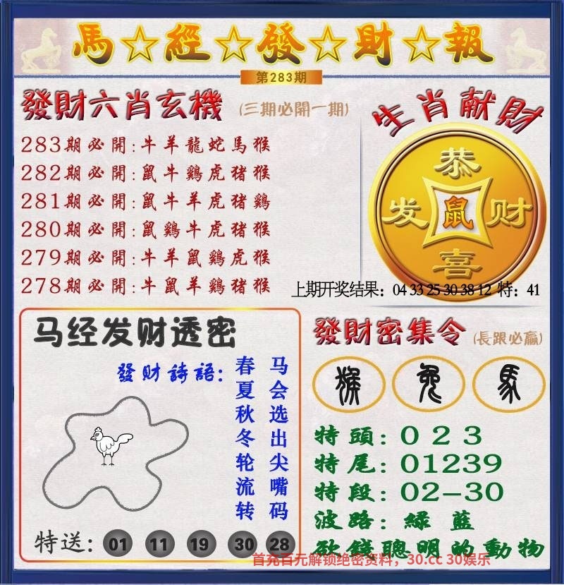 282期:六肖╠猪龙猴牛狗鼠╣开:牛41中 |